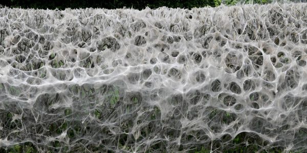 Pictures show incredible web created by ermine moth caterpillars on US hedge which they will eat from within